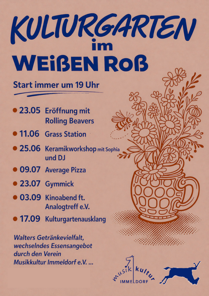 - Das Immeldorf Open Air findet vom 15.8.25-17.8.25 statt. Wir werden als Verein dort einen Grillstand betreiben. Hier benötigen wir Hilfe und werden beizeiten wieder so ein google.doc Formular erstellen.